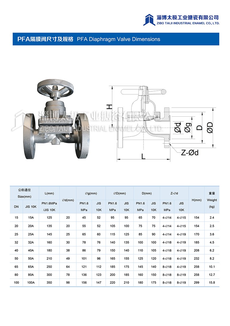 太极氟塑料PFA隔膜阀是用隔膜作起闭件封闭流道、截断流体、并将阀体内腔和阀盖内腔隔开的截止阀。结构简单、密封和防腐性能较好,流体阻力小。