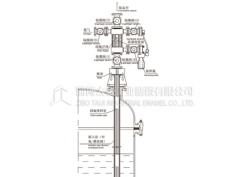 太极反应釜手动取样系统(MANUAL SAMPLING SYSTEM FOR REACTORS)为防腐手动取样装置。取样物料接触各部件均采用里衬PFA、衬氟材质,达到防腐目的;四氟吸料管配套插入管(衬氟/雷竞技下载链接材质)浸于釜内料液以下,增加其过程的稳定性。通过抽真空将物料在系统中安全、快捷取样。