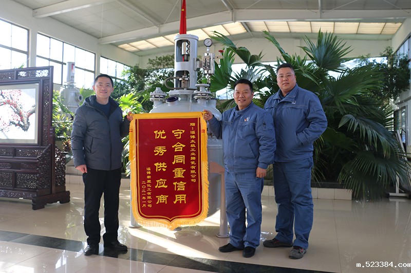 2021年1月7日淄博新宿化工有限公司相关领导特意来到我太极雷竞技下载链接设备公司,亲手赠予我公司“守合同重信用,优秀供应商”锦旗以表感谢。由于该公司生产线扩产需要,在工期非常紧,品质要求非常严格的情况下,我公司技术及相关生产人员,协同合作,加班加点,所需设备保质保量按时交货,从而保证了该公司生产线的如期安全合格投入使用。
